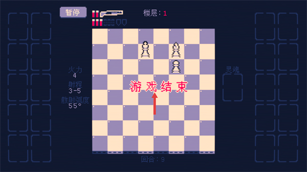 2、回合推進至9時出現游戲結束提示,說明當前戰局失敗,需總結此次失利原因,比如敵方棋子的包圍策略、自身移動與攻擊的時機把控,為重試后的戰局調整做準備。
