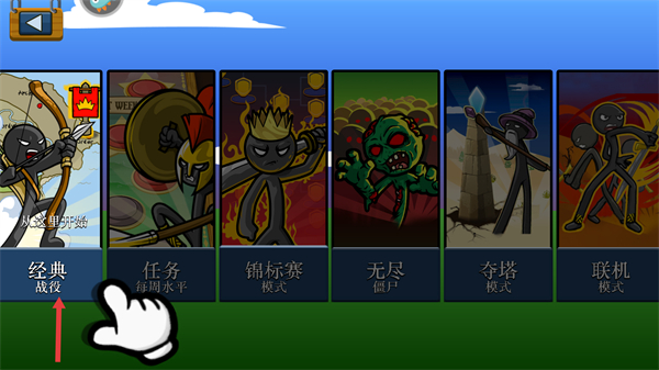 1、界面展示多個玩法模塊,包含經典戰役、任務、錦標賽等模式,其中經典戰役標注【從這里開始】,新手可先點擊該模塊進入,開啟游戲的初始體驗。