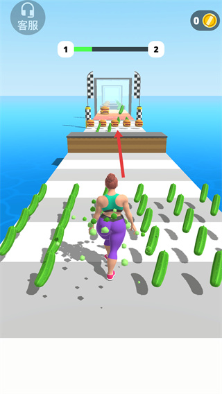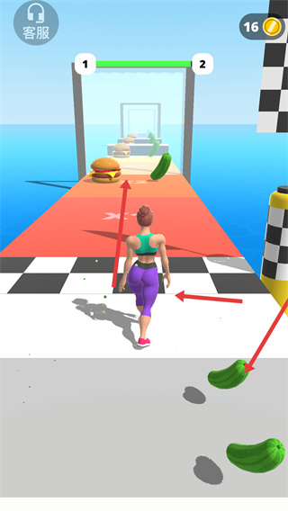 2、在奔跑的過程,收集賽道上的黃瓜等物品,同時避開漢堡等會增重的食物,保持瘦身節奏。