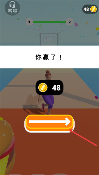 4、成功到達終點后,會顯示你贏了,并獲得金幣獎勵,點擊箭頭按鈕可進入下一輪挑戰。