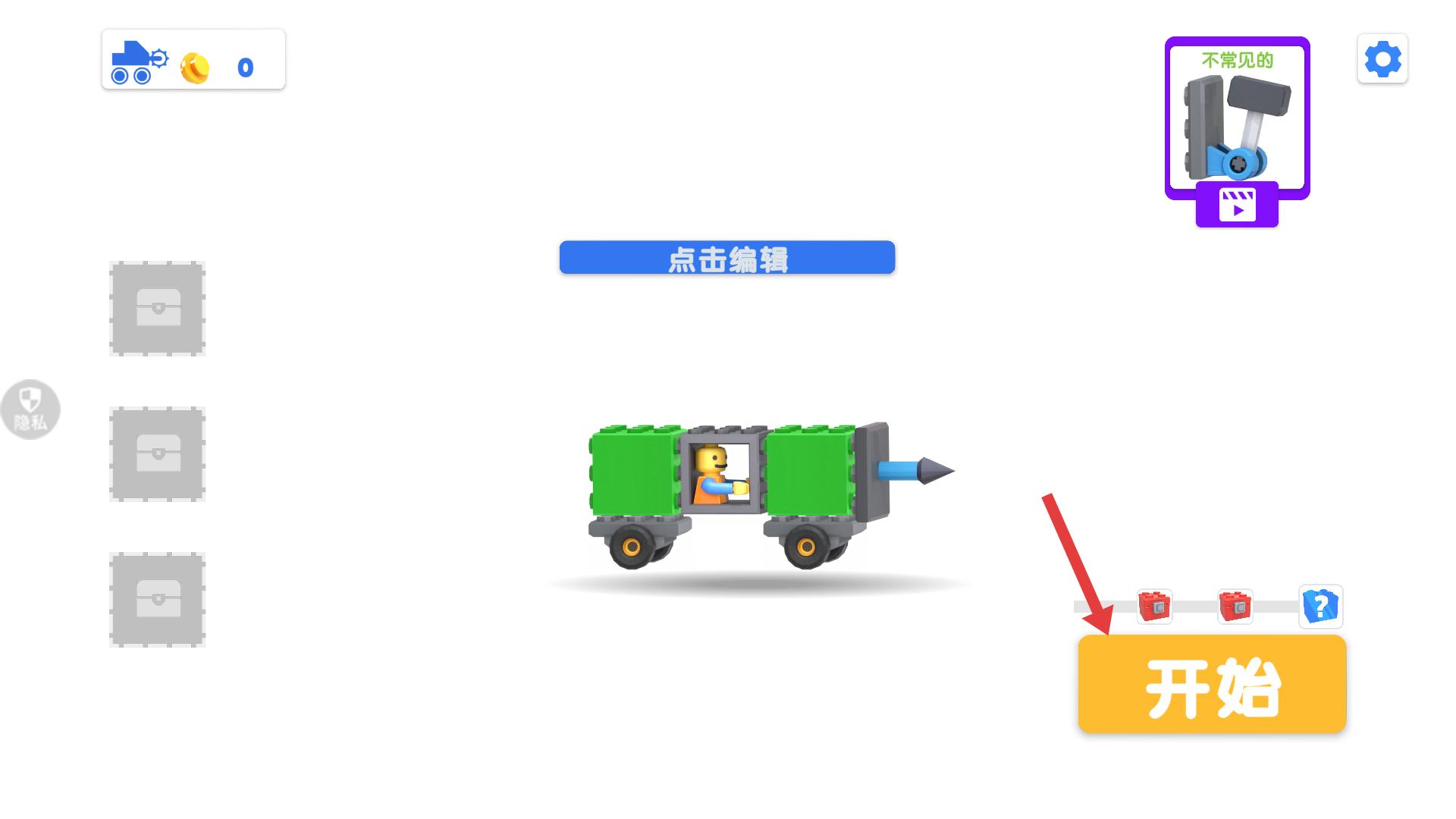 1、點擊【開始】,進入游戲,操控由積木組成的車輛,開啟挑戰之旅,準備在比賽中展現車輛性能。