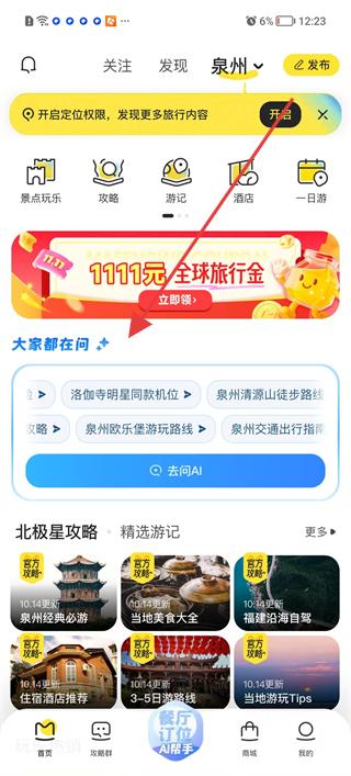 2、查看大家都在問的旅游問題,如洛陽橋同款機位、清源山徒步路線等,了解當地旅游熱點,為行程做準備。