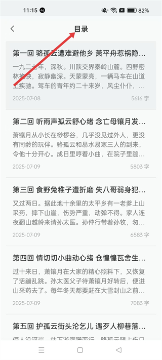 4、點擊開始閱讀后進入目錄頁面,可查看書籍各回目內容,選擇具體章節進行閱讀,方便用戶按章節瀏覽書籍內容。