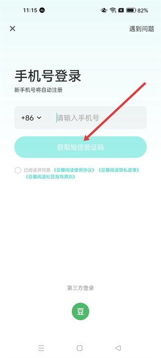 1、進入豆瓣閱讀手機號登錄頁面,輸入手機號后點擊獲取短信驗證碼,新手機號將自動注冊,登錄前需勾選同意相關使用協議和隱私政策。
