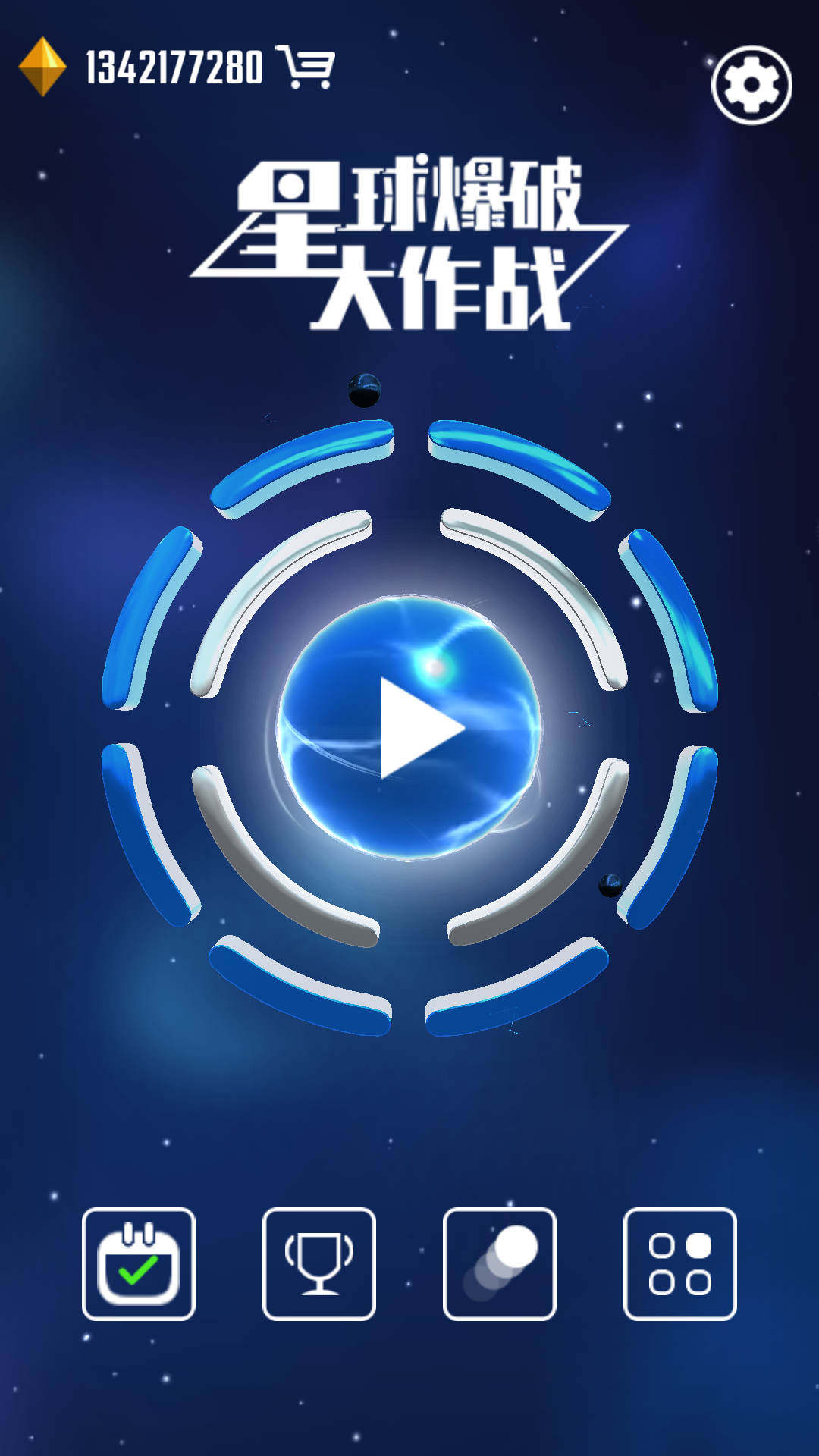 1、游戲主界面顯示游戲名稱,點擊中間藍色星球上的播放按鈕,即可開始游戲,開啟星球爆破的挑戰。