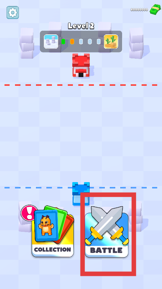 1、玩家下載游戲之后然后點擊進入在關卡選擇界面,點擊BATTLE按鈕,即可進入戰斗場景,開啟與敵方的對抗奔赴的戰斗旅程。