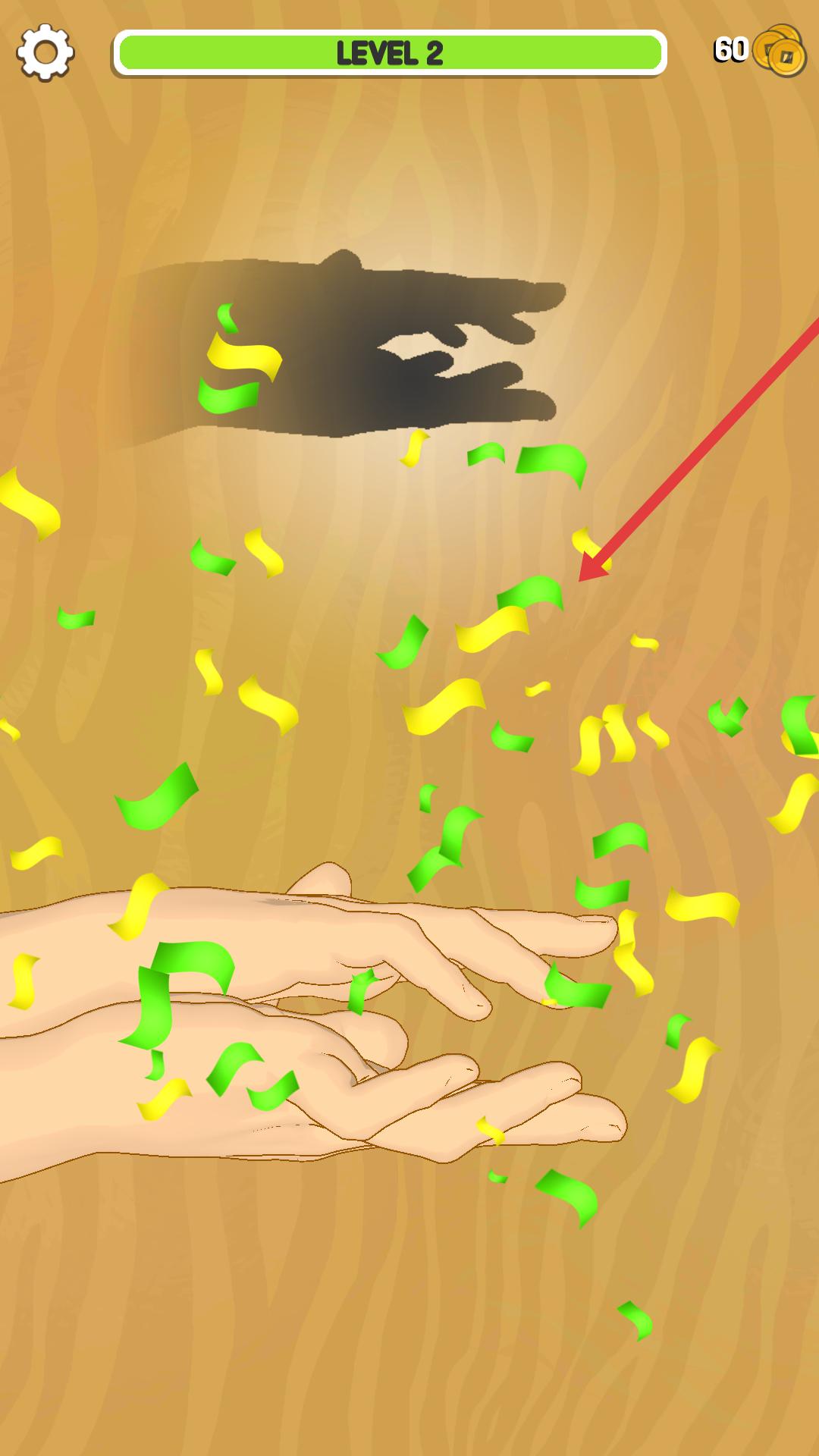 4、順利完成第二關的手影模仿后,會有黃綠相間的彩紙飄落,這表明關卡成功通過,可繼續挑戰后續關卡。