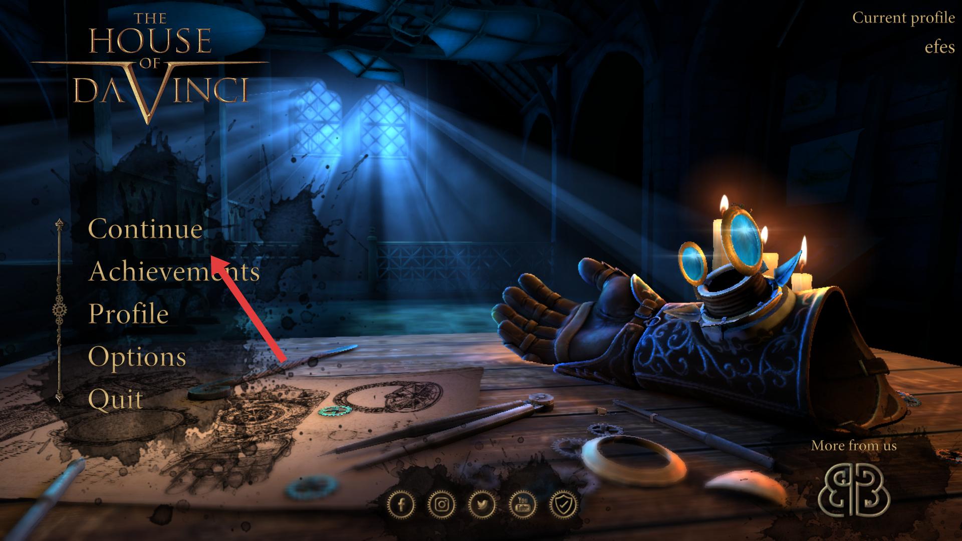 1、游戲主界面有多個選項,點擊【Continue】,可繼續之前的游戲進程,進入到游戲場景中,開啟解謎探索。