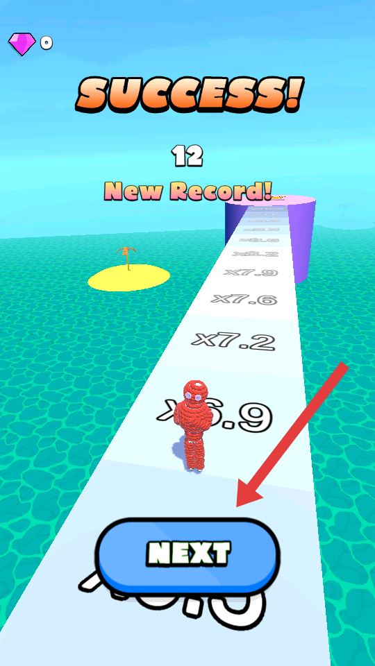 4、成功通關后,界面顯示勝利和新記錄,還有藍色NEXT按鈕,點擊它即可進入下一關,繼續新的游戲挑戰。