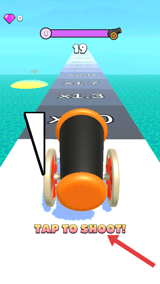 3、看到大炮和點擊射擊提示時,點擊屏幕發射,借助大炮的力量,結合道路上的倍數標識,讓角色或道具到達更遠位置。