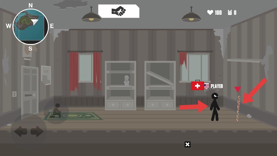 3、進入房屋后,能拾取木棍等道具,這些道具可用于后續戰斗,提升自身戰斗能力。