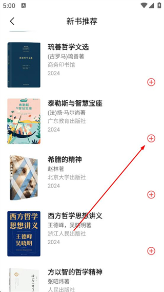 2、在新書推薦列表頁面選擇感興趣的圖書,點擊添加,將圖書加入借閱意向。