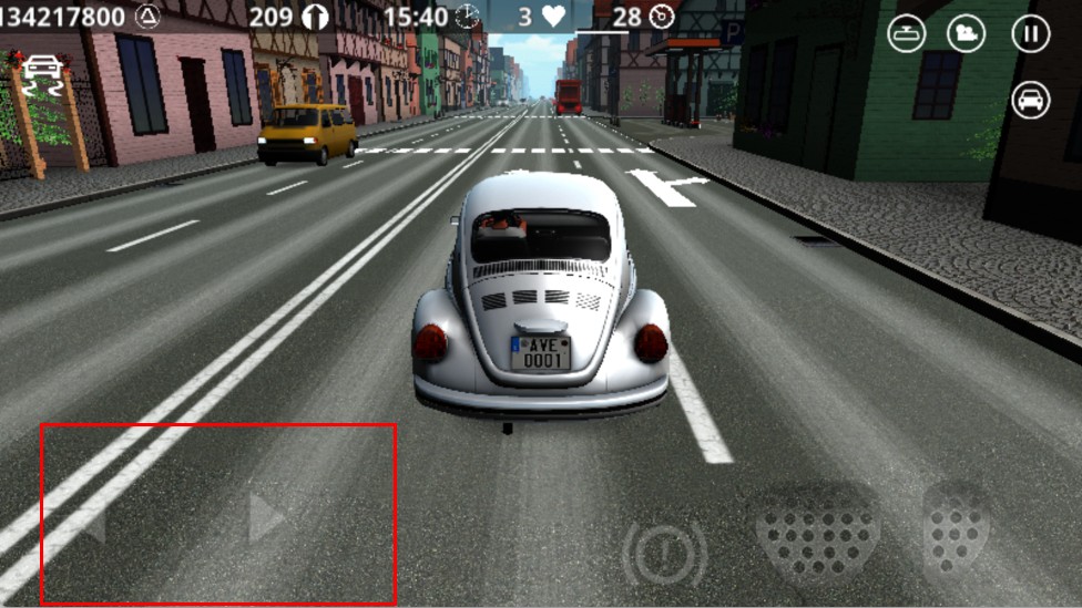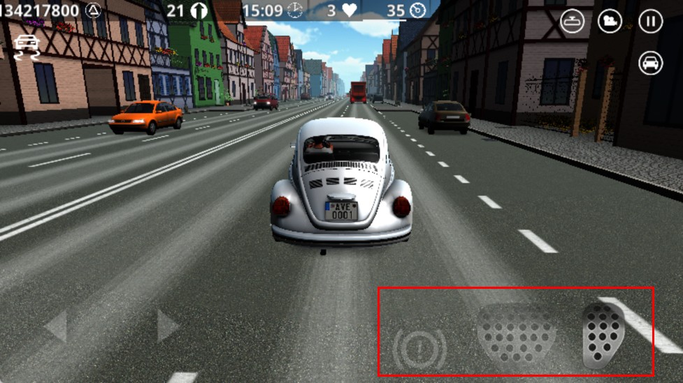 3、進入駕駛場景后,利用右側的油門、剎車等控制按鈕,控制汽車的加速與減速,讓汽車在道路上行駛。