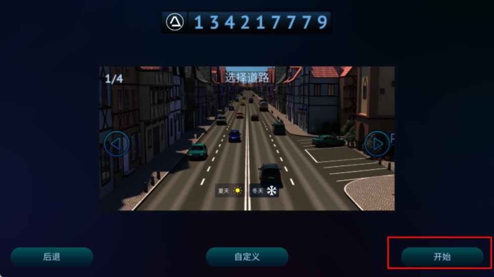 2、在道路選擇界面,選擇好道路后,點擊開始按鈕,正式進入城市道路駕駛場景。