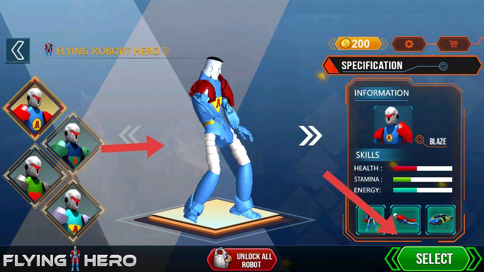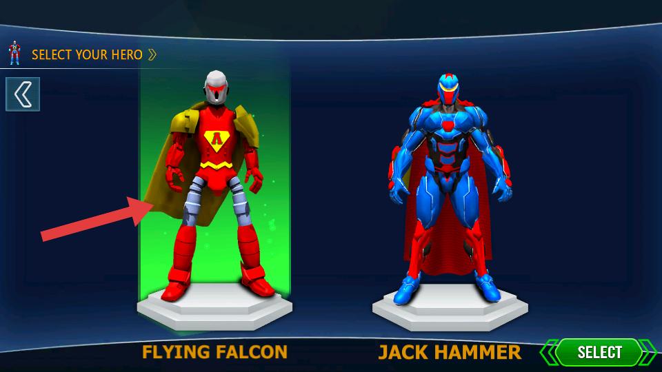 2、來到英雄選擇界面,這里有FLYING FALCON,ACK HAMMER等不同英雄,可挑選心儀的英雄開啟后續游戲。