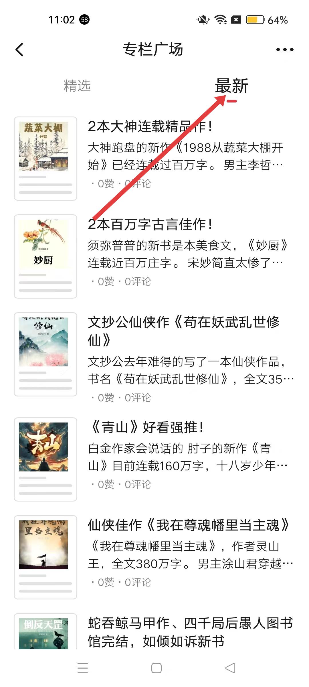 4、點擊最新,可查看最新發布的專欄內容,及時了解最新的小說分析、推薦等信息。