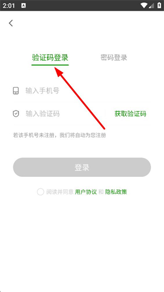 1、選擇驗證碼登錄,需輸入手機號、驗證碼,勾選同意用戶協議和隱私政策后登錄,未注冊手機號將自動注冊,方便快捷。