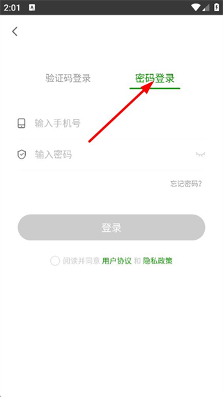 2、選擇密碼登錄,需輸入手機號、密碼,若忘記密碼可進行重置,勾選同意用戶協議和隱私政策后登錄,適合習慣密碼登錄的用戶。