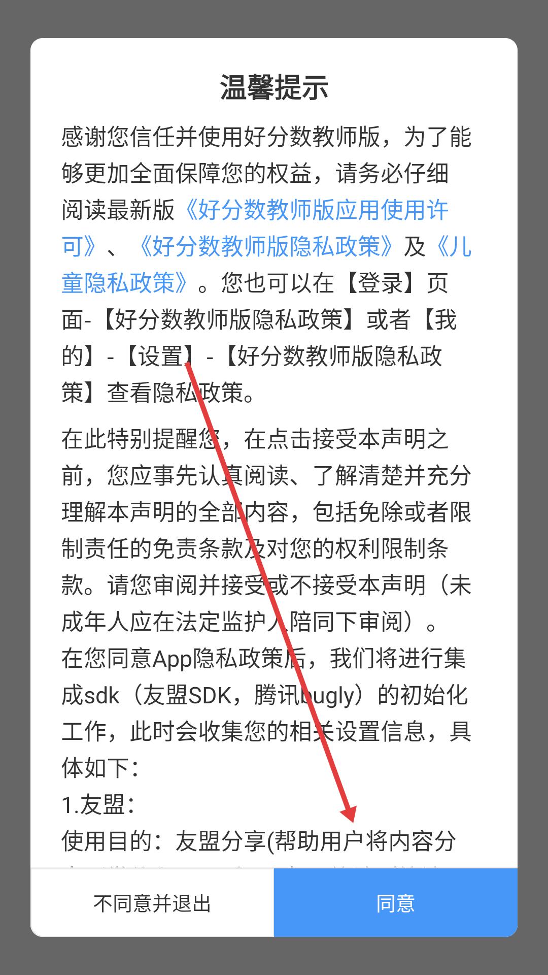 1、下載安裝完成后進入,需在用戶協議和隱私政策界面點擊同意,接受相關條款后才能進入應用。