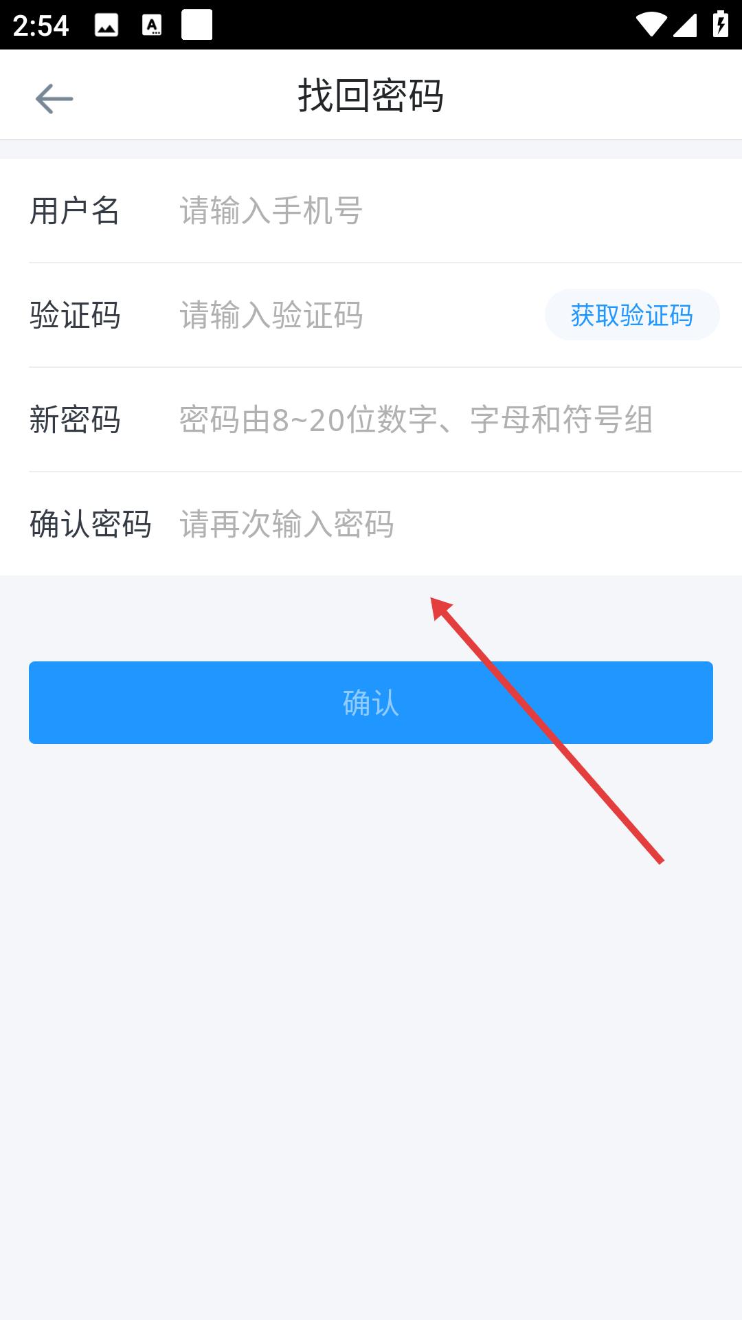 3、好分數教師版找回密碼時需輸入手機號獲取驗證碼,設置由數字、字母和符號組成的新密碼并再次確認,完成后點擊確認即可。
