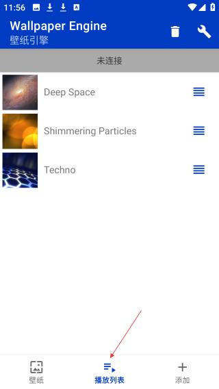 2、點擊播放列表頁面,呈現不同名稱的壁紙,如Deep Space等,可對壁紙進行管理與播放切換。