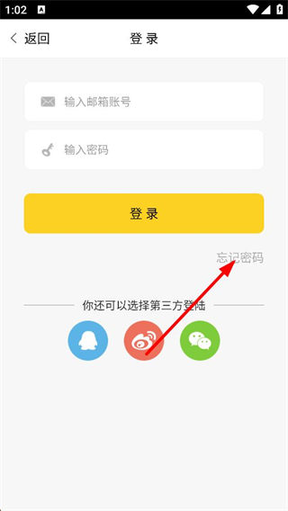 3、進入登錄頁面后,需輸入郵箱賬號和密碼完成登錄,也可點擊忘記密碼選項,進入密碼找回的操作頁面。