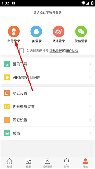2、進入我的界面后,可見賬號登錄QQ登錄等多種登錄方式,還有我的下載等功能選項,選擇賬號登錄進入對應頁面。