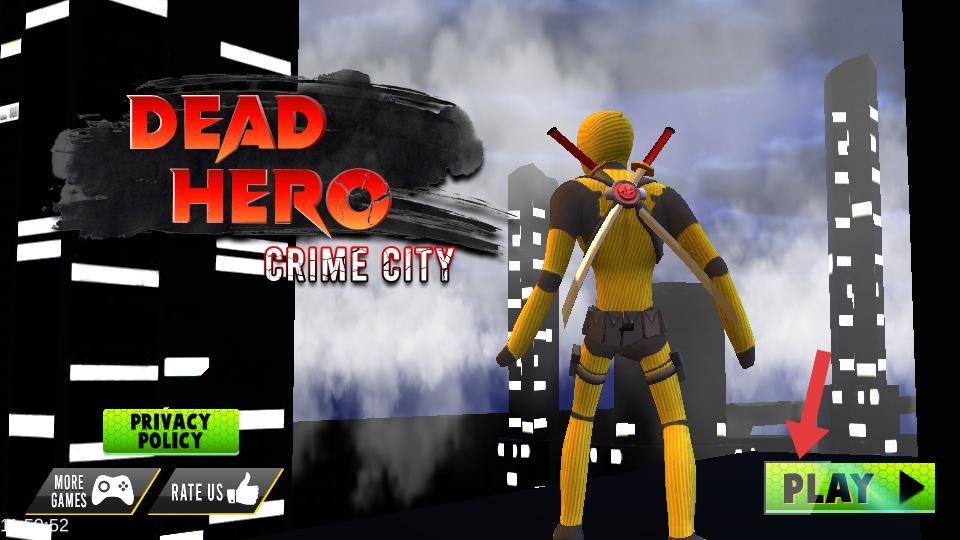 1、進入游戲,看到DEAD HERO CRIME CITY的標題界面,右下角有PLAY按鈕,點擊即可開啟游戲。