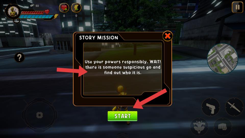 2、進入任務界面,會彈出STORY MISSION窗口,顯示任務提示,點擊START按鈕,開始執行任務。