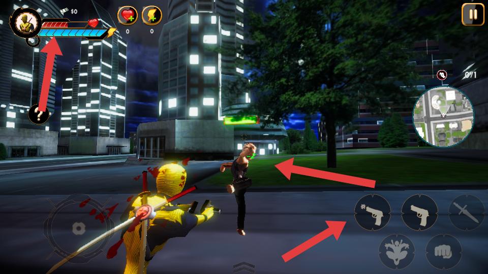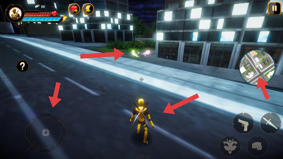 3、城市場景中可通過左側操作桿控制角色移動,右側小地圖能查看位置,朝著目標方向前進。