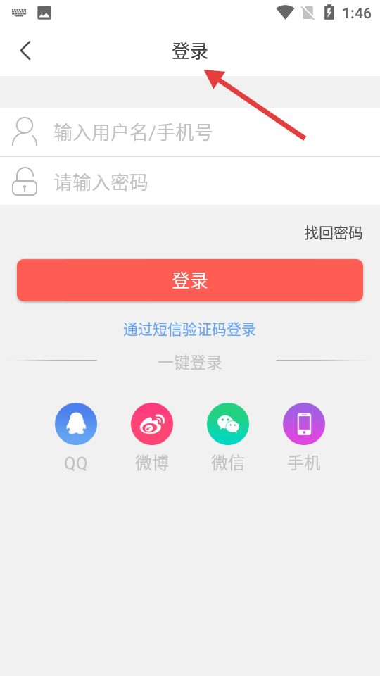 1、首張為登錄界面,能通過輸入用戶名或手機號與密碼登錄,也有短信驗證碼登錄選項,還支持QQ、微博、微信等快捷登錄。