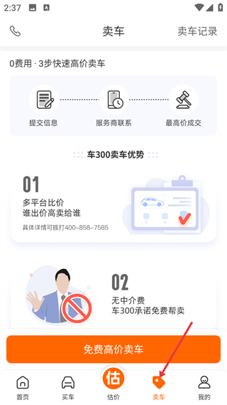 成交返現:賣車成功即可致電專屬客服,領取300元現金紅包