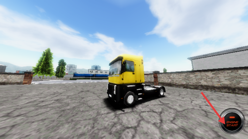 3、進入游戲場景就可以看到卡車停在場地中,點擊右下角的ENGINE START按鈕啟動卡車引擎,為后續駕駛做準備。