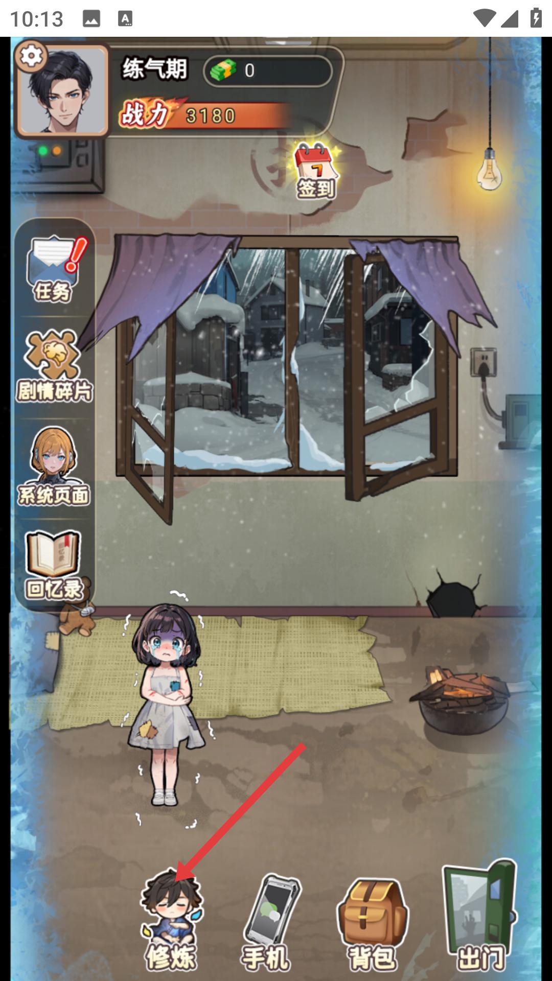 2、看到妹妹因寒冷發抖時,點擊下方【修煉】選項,進入修煉界面,通過修煉提升自身能力,以便更好地照顧妹妹。