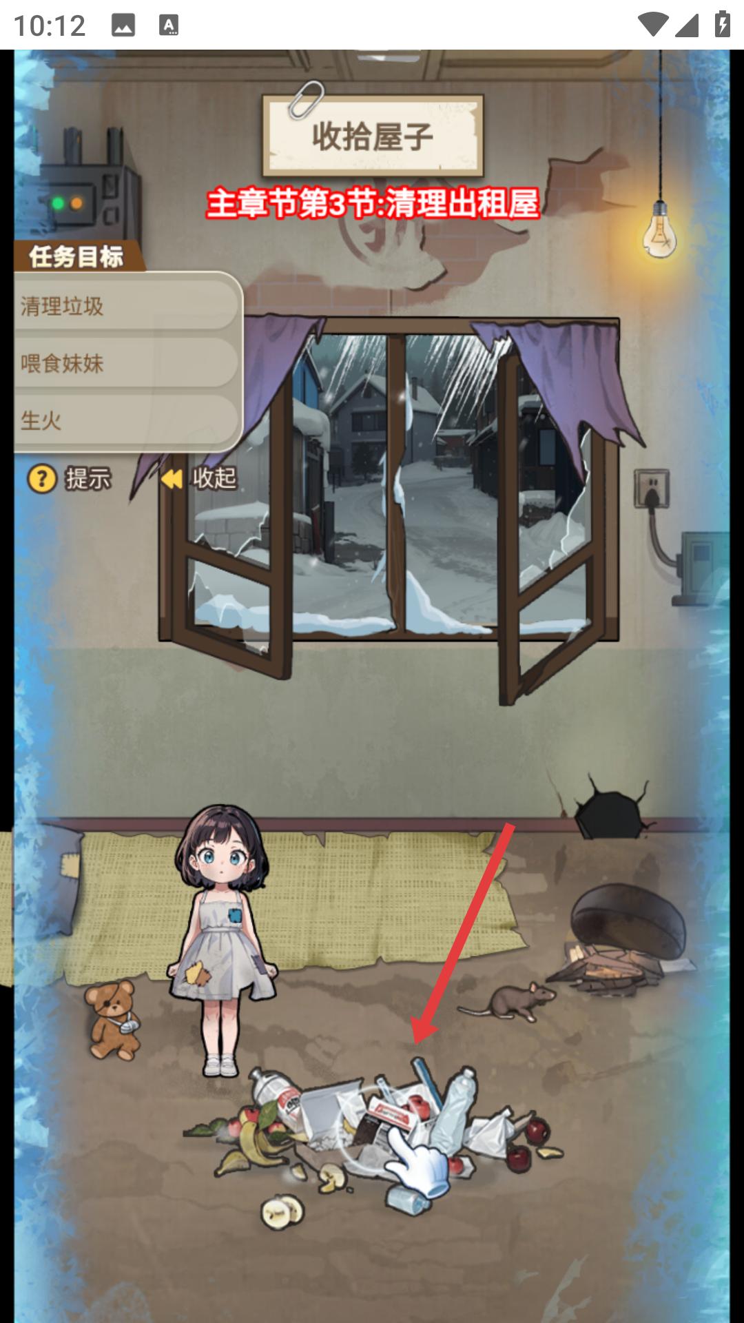 1、先處理地上的垃圾,完成清理垃圾的任務目標,為后續喂食妹妹、生火等任務做準備。