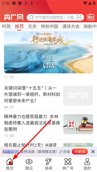1、進入APP首先看到首頁,展示時政、推薦等板塊,還有各類新聞資訊,可瀏覽時事熱點、專題報道等內容。