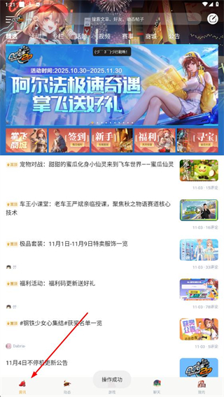 2、掌飛資訊頁面,可瀏覽精選、活動等板塊,查看寵物對戰、車王小課堂等游戲資訊,獲取游戲動態。
