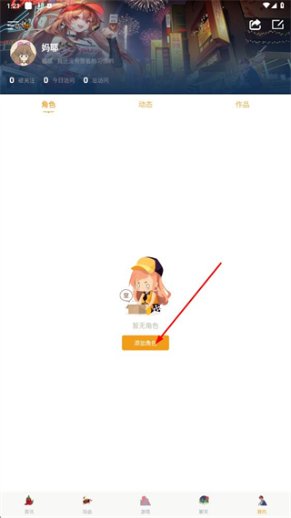3、個人角色頁面,點擊添加角色,進入角色添加流程,準備管理游戲角色。