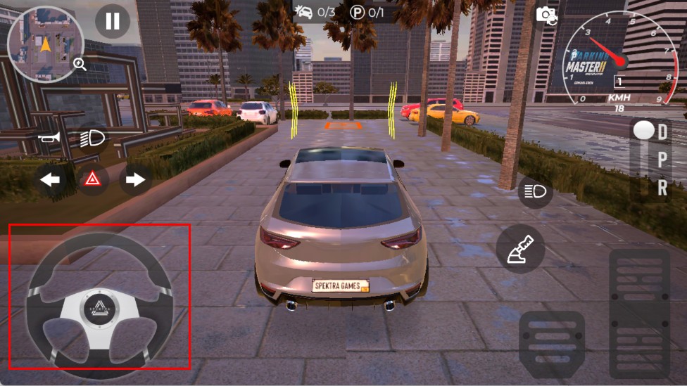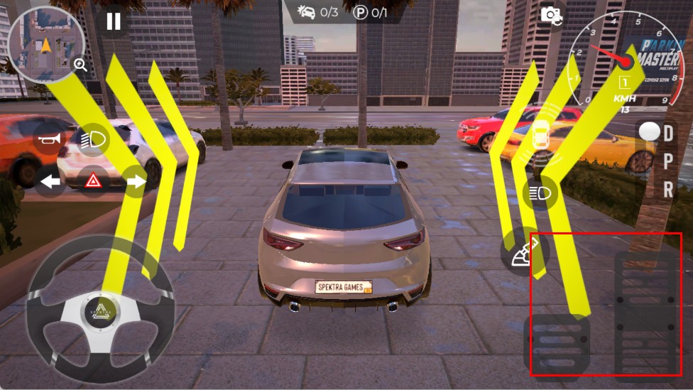 3、利用右側的油門和剎車踏板,控制汽車的加速與減速,精準控制汽車的行駛速度,為停車做準備。