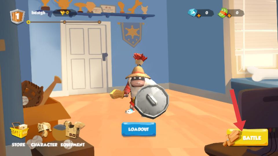 2、進入房間場景,能看到角色形象,還有STORE,CHARACTER EQUIPMENT等功能按鈕,點擊BATTLE按鈕,開始戰斗。