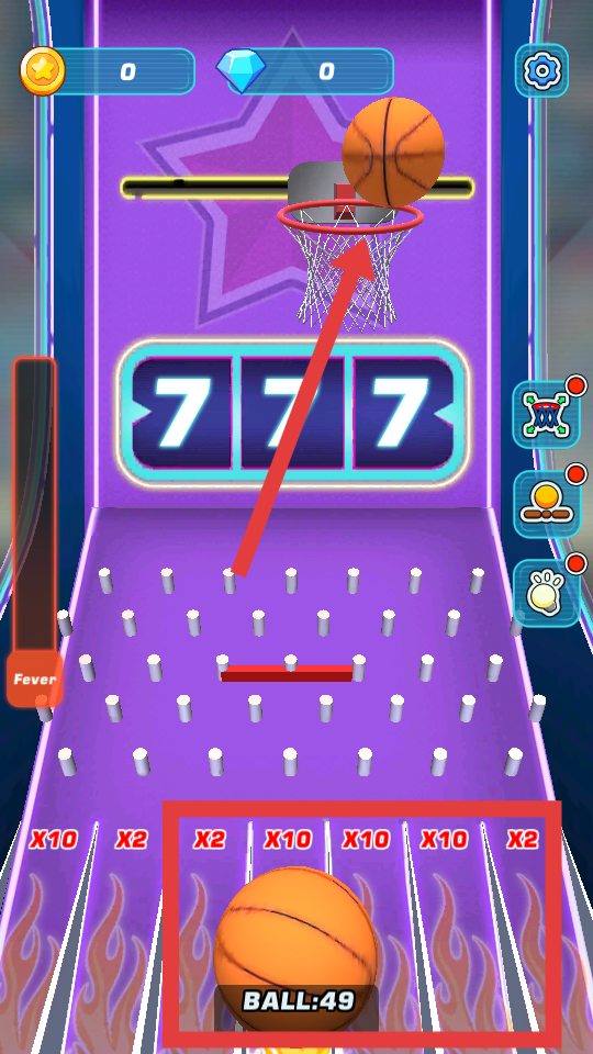 3、注意賽道上標有乘2等倍增標識的區域,讓籃球經過這些區域后再投籃,可使得分按相應倍數增加,獲取更多分數。