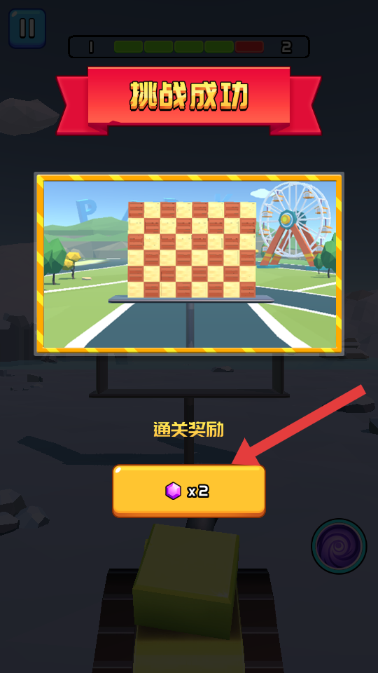 4、成功清除所有目標后,界面顯示挑戰成功,還有通關獎勵2的紫色寶石獎勵,完成關卡,可準備進入下一關。