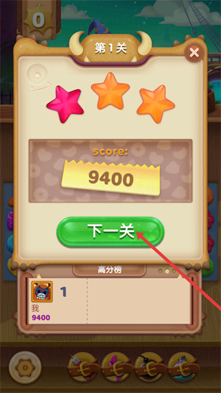 4、關卡完成后會出現評分界面,玩家可獲得星級評價和分數,點擊下一關繼續挑戰。