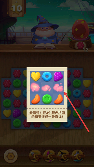 2、玩家要把3個顏色相同的糖果連成一條直線,以此消除糖果,完成孵化精靈蛋的任務。