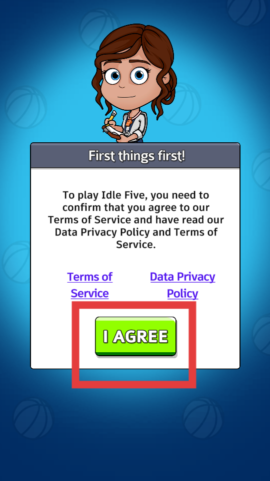 1、玩家下載游戲之后,在游戲初始界面,閱讀相關服務條款和隱私政策后,點擊I AGREE按鈕,進入游戲主界面。