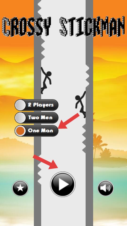 1、進入游戲,可選擇2Players,Two Men,One Man模式,選好后點擊播放按鈕,開始游戲。