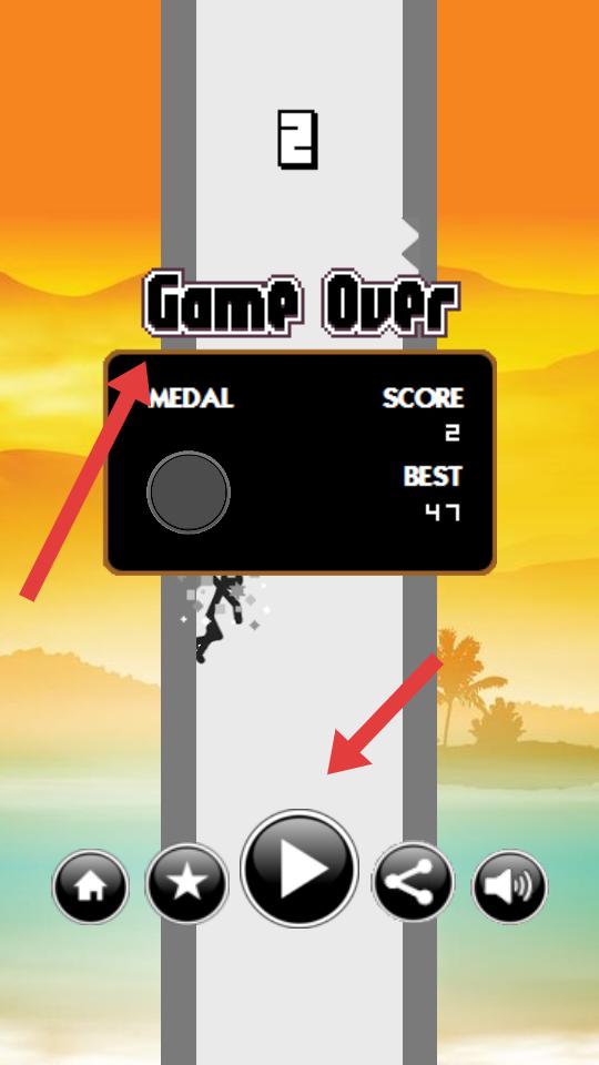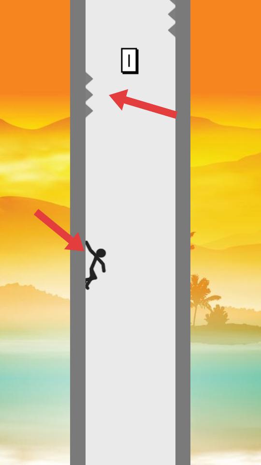 2、游戲中操控火柴人攀爬,上方會顯示分數,努力讓火柴人向上移動,獲取更高分數。