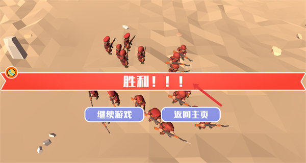 4、成功擊敗所有敵人后會顯示勝利,此時可選擇繼續游戲挑戰下一關或返回主頁。