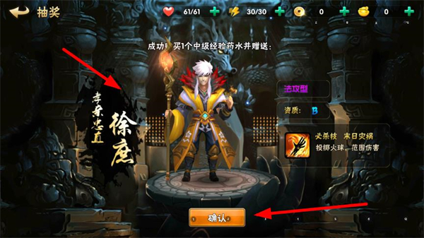 3、招募成功后可獲得武將徐庶,查看其資質、技能等信息,點擊確認即可將其納入麾下,增強陣容戰力。