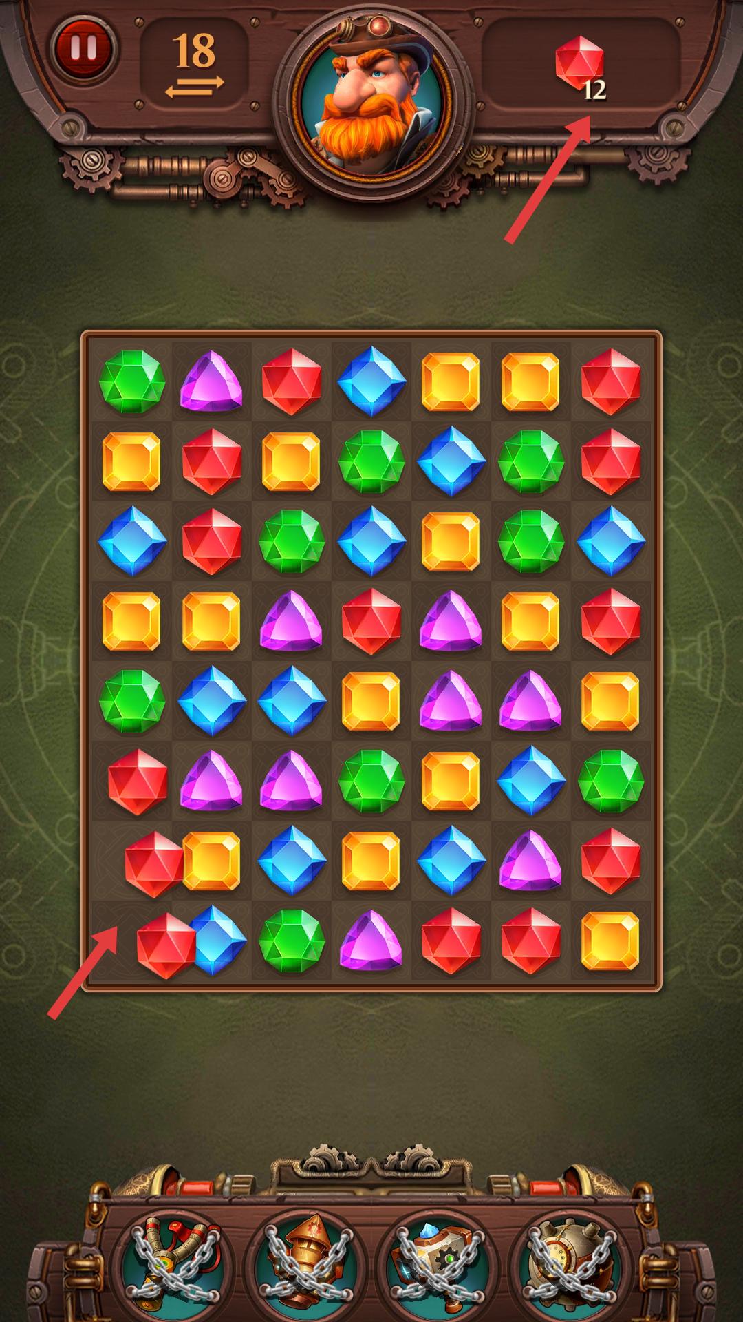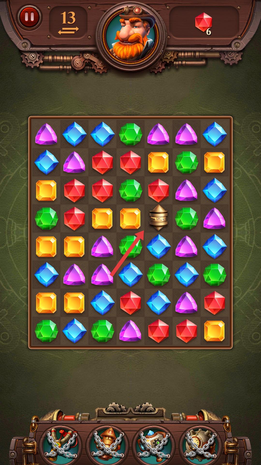 3、消除寶石時,若出現特殊道具,可利用其強大效果,快速消除大量寶石,助力更快達成關卡目標,提升通關效率。